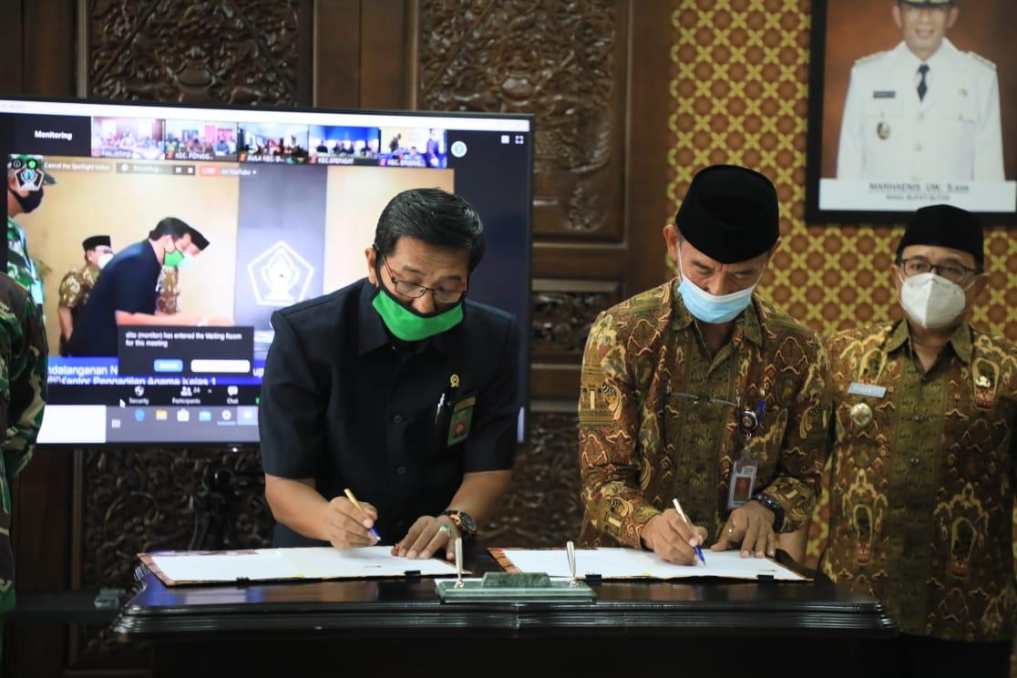 BLITAR KAB – Kamis (18/06/2020) Pemkab Blitar melakukan Penandatanganan MOU dengan Pegadilan Agama Blitar Kelas 1 A tentang pelayanan Adminduk di ruang transit Kantor Kanigoro.