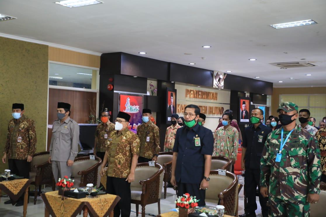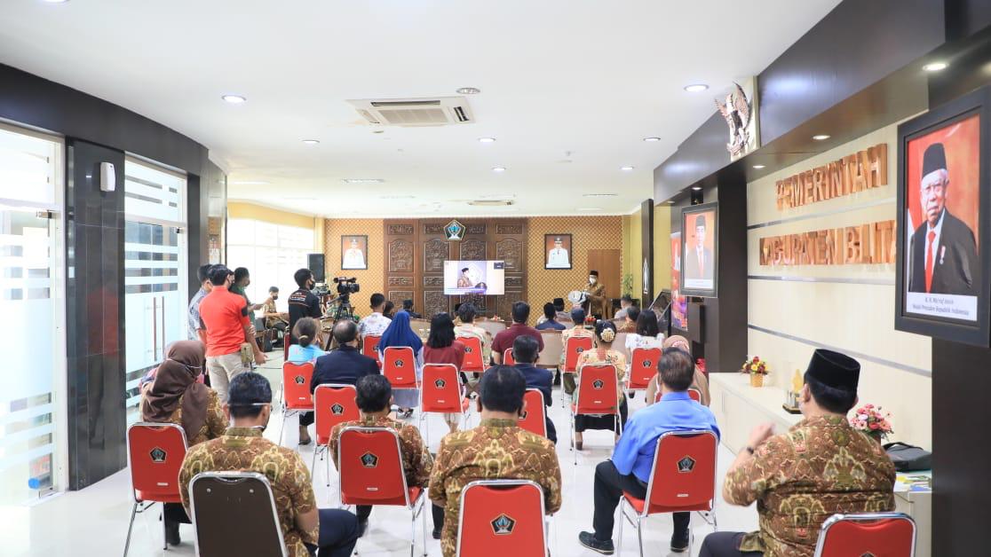 Kegiatan ini dihadiri Bupati Blitar Drs. H. Rijanto, MM bersama Forkopimda, Ketua TKKSD, Inspektur beserta Camat se-Kab Blitar (melakui zoom metting).